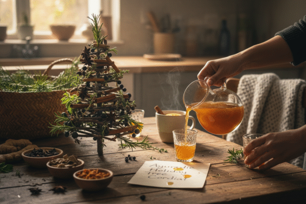 Descubra a Magia Curativa das Ervas da Estação com esta Receita de Cordial de Árvore de Feriados Ayurvédicos